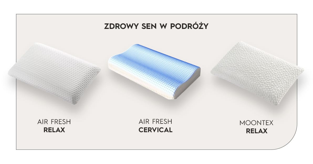 Sposobem na lepsze samopoczucie w podróży jest m.in. korzystanie z poduszki podróżnej, która zapobiega bólom głowy i karku – dolegliwości bólowe są związane z długim przebywaniem w wymuszonej, niewygodnej pozycji. Mając pod ręką ergonomiczną poduszkę, można odciążyć kręgosłup szyjny i zadbać o prawidłowe ułożenie głowy w czasie regenerującej drzemki.