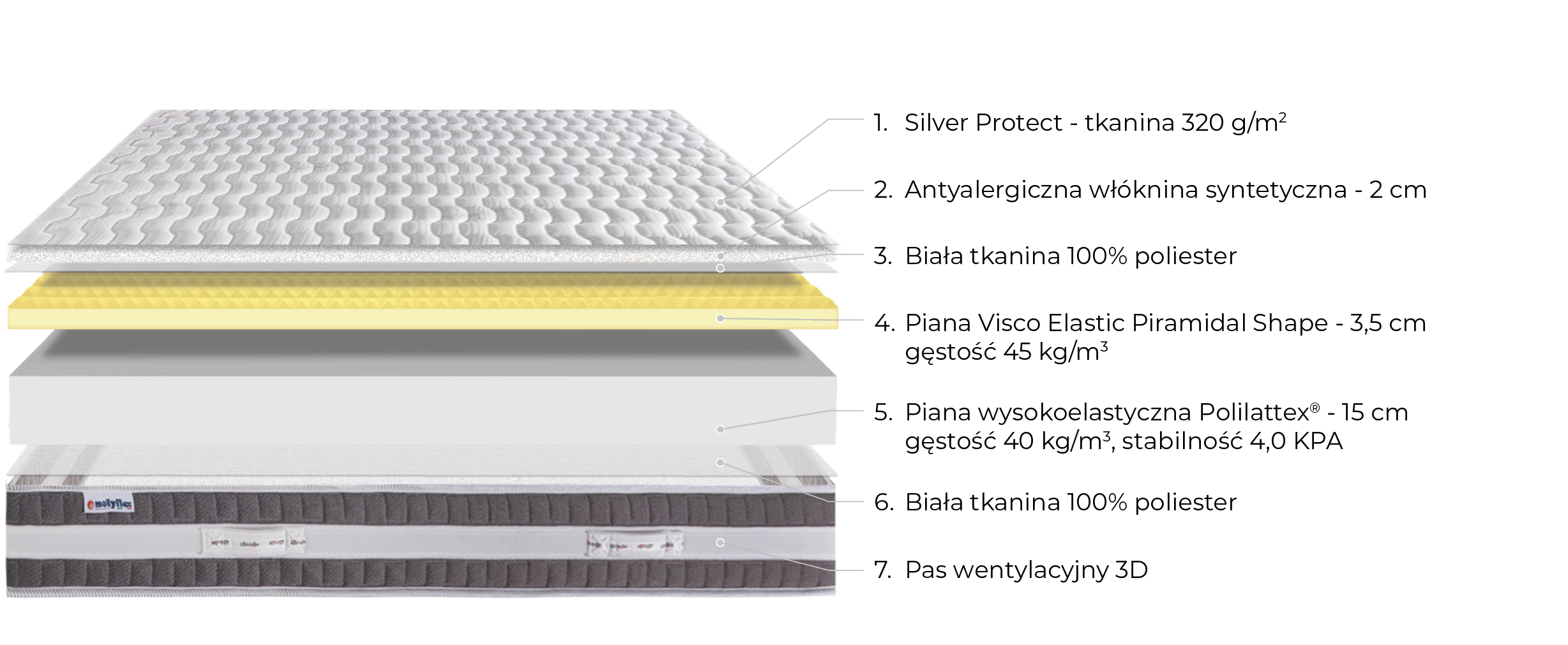 PoliSoff (35 kg/m³) nadający sprężystość i zwiększający przewiewność materaca